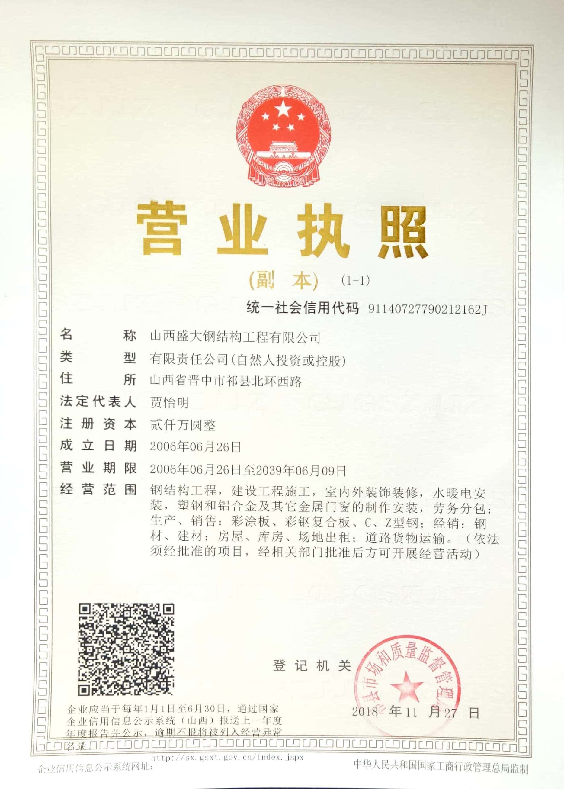 山西盛大鋼結(jié)構(gòu)工程有限公司 山西盛大鋼結(jié)構(gòu)工程有限公司成立于1996年,坐落于國(guó)家歷史文化名城——山西祁縣。擁有兩大智能化鋼結(jié)構(gòu)生產(chǎn)基地,占地110畝,建筑面積3萬(wàn)余平方米,具備鋼結(jié)構(gòu)專業(yè)承包貳級(jí)、建筑工程施工總承包貳級(jí)資質(zhì),是一家集設(shè)計(jì)、制造、施工于一體的大型鋼結(jié)構(gòu)工程企業(yè)。 盛大鋼構(gòu)是中國(guó)鋼結(jié)構(gòu)協(xié)會(huì)會(huì)員單位,山西鋼結(jié)構(gòu)協(xié)會(huì)副會(huì)長(zhǎng)單位,山西建筑企業(yè)商會(huì)理事單位,山西省土木建筑學(xué)會(huì)會(huì)員單位,擁有國(guó)家知識(shí)產(chǎn)權(quán)局注冊(cè)商標(biāo)。公司已通過ISO9001質(zhì)量管理體系認(rèn)證,體系覆蓋鋼結(jié)構(gòu)加工與施工等核心… more +